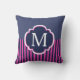 Padrão de listras azul e rosa quente com marinho na moda com monograma personalizável.