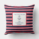 Marinho Azul Monograma Náutico Branco Monograma Travesseiro de faixas modernas