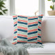 O travesseiro decorativo geométrico em forma de chic apresenta um padrão moderno de herbáceas em tons de marinho azul, coral e água do seaglass com sotaques brancos.