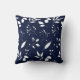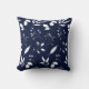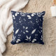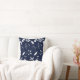 As silhuetas foliage em branco sentadas sobre um fundo azul marinho para este travesseiro decorativo.