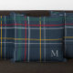 Uma xadrez festiva de marinho com cheques vermelhos, verdes, amarelos e brancos faz deste travesseiro um perfeito item de decoração. Adicione um toque personalizado com um tipo clássico inicial. Este travesseiro de Natal faz um presente excelente - para você ou para os outros! Excelente para recém-casados, hospedeiros, família e muito mais. Coordena-se também com a coleção de Design de Lea Delaveris de artigos de papelaria, presentes e decorações.