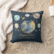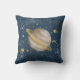 Este travesseiro decorativo mágico apresenta planetas imaginários, luas e estrelas em marinho e em pórtico dourado.
