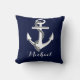 Um marinho bonito, um branco e um travesseiro decorativo náutico cinzento da âncora. Pode ser personalizado com seu nome, dizer ou frase.