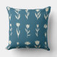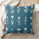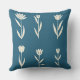 Um padrão de 15 silhuetas de tulipas azuis contra um fundo marinho, dispostas em três filas de cinco. Cada tulipa é representada de uma vista lateral, mostrando seu caule e folhas, com alturas e orientações variadas. Os caules são heteros, enquanto as folhas são longas e estreitas, com algumas tulipas com folhas múltiplas. As tulipas estão uniformemente espaçadas, sem sobreposições nem lacunas entre si. O fundo é uma cor sólida de marinho, que fornece um contraste simples e limpo às tulipas creme. O design geral é minimalista e elegante, com foco na simplicidade e beleza das tulipas.