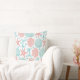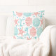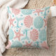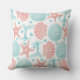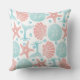 Traga uma pequena praia para a decoração interior com este travesseiro decorativo de algodão com estrelas-do-mar, caudas de baleia, ondas, e dólares de areia e conchas marinhas em tons costeiros de coral e espuma-do-mar azul.