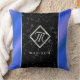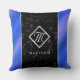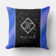 Almofada Mármore preto Elegante e monograma azul-real de fo