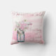 Travesseiro de Casamento - Vintage blue mason jar amarrado com um fio de juta e um buquê de flores de ervilha doces em tons pastéis de creme e rosa colocados em frente a um derrame de aquarela rosa pintado de fundo. © 2015 Cores d'água originais por WhimsicalArtwork™ Perfect para o casamento ou a festa de vintage daquele país.
