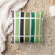 Padrão geométrico linear, retangular, listrado de matizes pretas, roxas e verdes.
