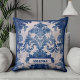 Elegante vintage Travesseiro de monograma azul toile de jouy. Belo padrão perfeito de jouy Azul em fundo branco.impressões de Toile são uma fúria constante no momento, este é um elegante e ornamentado toile de jouy com cor damasco exótica, um estilo divertido que atualmente está se tornando atraente para decoração doméstica, roupas, móveis e Capas de ipad, convites e muito mais. O design é clássico e eterno com uma cor espantosa. Você pode alterar todas as cores e fontes do texto, clicar para personalizar ainda mais abaixo da área de personalização do texto que o levará à ferramenta design. Um presente feminino único para aniversário, feriados e qualquer ocasião especial. Seja para dia de os namorados, Natal ou como um presente em geral, faz uma ideia de presente excelente