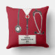 Travesseiro de presente de um médico criativo com mato vermelho e uma ilustração estetoscópica. Edite texto para criar uma manutenção exclusiva de graduação ou presente de aniversário para o seu médico favorito ou outro profissional de saúde.
