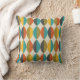 Um design de padrão moderno do século médio retro enfeita este travesseiro/almofada de designer numa paleta de cores típica da era turquesa, mostarda verde-oliva, cinza e laranja queimada. Este fabuloso travesseiro/almofada fará uma adição muito na moda a qualquer interior de casa, seja ele moderno, retrô ou minimalista. © Julie McIver