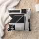 Este travesseiro tem um estilo Moderno do século Médio com formas geométricas e linhas em preto, cinza e branco. É contemporâneo, é retrô e é muito estilo para sua sala de estar!