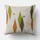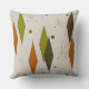 Travesseiro moderno do meio século no teste padrão verde, marrom e alaranjado retro do diamante. Projetado pelo artista Gail Gabel, o LLC, que foi projetar o meio século inspirou produtos por muitos anos.