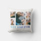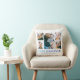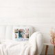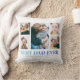 Travesseiro personalizado com 5 fotos bonitas dele e das crianças, as palavras "MELHOR PAI NUNCA" em uma fonte azul moderna e os nomes das crianças.