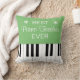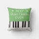 O piano principal é o Travesseiro decorativo de Natal para um professor de piano, pianista, pianista, etc. Chaves pretas e brancas de piano e listras verdes, com tipografia elegante de script "Melhor professor de piano de sempre" e o nome. Elegante ideia personalizada de presente de Feriado de inverno para ele ou ela.