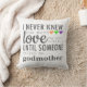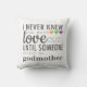 Você tem sorte de ter uma madrinha especial? Este é um presente perfeito. Este design bonito diz: "Eu nunca soube o quanto meu coração amava até alguém me chamar de madrinha." em uma fonte negra ou cinza com corações coloridos. Sua madrinha vai adorar saber que ele é seu incrível! Você pode personalizar a cor do travesseiro se quiser.