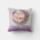 Guarde a memória para sempre com este travesseiro roxo de recordação para uma menina ou menino. Este design apresenta uma imagem do seu bebê com primeiro, segundo e último nome. No verso, personalize o design listrado roxo com a data de nascimento do seu bebê, hora de nascimento e peso do bebê.