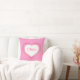 Este travesseiro apresenta um coração branco esboçado em rosa sobreposto com um modelo de texto em uma fonte rosa cursiva em um lado e um padrão de repetição de corações cor-de-rosa com centros lavados em branco no lado oposto. Clique em "Personalizar" para alterar a cor de fundo e personalizar o texto. Escolha estilo, tamanho e cor da fonte.
