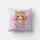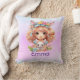 Travesseiro decorativo com linda pastel-color com uma garota segurando um coelhinho que ela também tinha orelhas coelhinhas pode ser personalizada com o nome de suas meninas