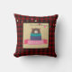 Este travesseiro de padrão de xadrez de búfalo apresenta um urso marrom giro, luzes e um campo de texto para você adicionar um nome ou saudação. Um presente de decoração ideal para uma criança ou outra.