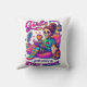Design vibrante e colorido com um esqueleto feminino sentado numa cadeira confortável com seu gato, lendo um livro e segurando uma xícara de café. O texto colorido diz: "Meninas só querem ficar em casa". Esse design está disponível em uma grande variedade de produtos.