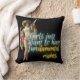 Campy travesseiro decorativo apresenta fotos de dançarinas fantasmas vintage com dançarinas dançarinas com "as meninas só querem ter direitos fundamentais" em textos de neon azul e dourado.