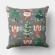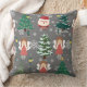 Garotinha adorável e Papai Noel, travesseiro decorativo de Natal Vermelho, verde e cinza para este ano. Travesseiro prático de padrões de fundo de cinzas para o feriado de Natal.