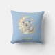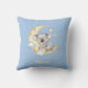 Este travesseiro personalizado para meninos apresenta um bebê coala fofo enrolado dormindo em uma lua crescente com estrelas brilhantes em um fundo azul pastel caprichoso.