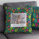 Crie um presente de fotografia divertida para a Rua. Dia de Patrick. Este travesseiro decorativo está pronto para ser personalizado com sua foto e sua própria mensagem. Sua foto e mensagem aparecem sobre um fundo festivo padronizado com ilustrações simples, pintadas à mão, de shamrocks, flores e arco-íris. Os gráficos brilhantes e coloridos são colocados contra um fundo negro.