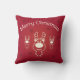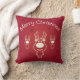 Uma ilustração feliz de Natal. Um desenho animado de renas bem fofo e adorável. Fundo vermelho festivo com flocos de neve caindo. Uma representação engraçada e humorística.