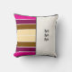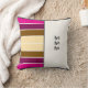 Travesseiro com dois lados em cada lado. Quase branco e com texto de um lado, listras castanhas e rosa do outro. Onde o ângulo é talvez ainda mais importante agora. Ou o rosto que prefere...