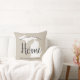 O travesseiro de boas-vindas apresenta um design de tipografia com texto de script "Home" e mapa do estado de Michigan. Personalize com seu monograma de cidade e família. bege neutro preto suave e branco. Um padrão de listras horizontais veste a parte de trás do travesseiro.