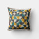 A stylish throw pillow featuring a bold mid-century modern geometric pattern in a chic color palette of teal, mustard yellow, and charcoal grey. Adds a contemporary and artistic touch to any living space.