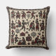 This is a mid century modern indian art style retro pattern vintage throw pillows with human motifs in black and red.