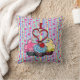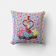 Travesseiro decorativo listrado azul, cor-de-rosa e amarelo bonito (feito nos EUA) com as estrelas cor-de-rosa bonito e coração de I com uma imagem de três cupcakes saborosos bonitos embaixo. Um presente legal e na moda adorável para mulheres & meninas.
