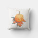 Almofada decorada com uma ilustração de tema Outonal de uma mini abóbora repousando sobre uma Folha de Carvalho. Um lado da almofada tem uma única grande ilustração da arte da abóbora. O outro lado apresenta a mesma ilustração num padrão menor. ©Dominic A. White. Todos os direitos reservados.