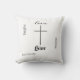 A minimalist Christian throw pillow featuring a clean black cross surrounded by powerful faith words — love, forgive, give, receive, and believe.