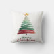 The back of the pillow complements the front perfectly with an all-over pattern of minimalist Christmas trees in various sizes and colors drawn from the front design—creating a cohesive, festive aesthetic from every angle.