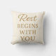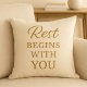 Create a calm and cozy atmosphere with this minimalist pillow featuring the soothing quote “Rest Begins With You.”