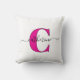 This minimalist monogram throw pillow will brighten up the decor of any room. The stylish black script of the first name and the elegant, bold pink, capital letter initial against the white throw pillow has a clean upscale aesthetic. It will elevate the look of a room on a sofa, chaise, bench or bed. It's double-sided and easy to personalize. You can get it for yourself and also personalize and gift it to family and friends for birthdays, anniversaries, house warmings and other special occasions.