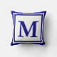 Um grande monograma azul marinho aparece sobre um fundo branco. O monograma tem três bordas marinho azul e branca. Personalize o travesseiro decorativo com o seu monograma/inicial.