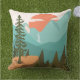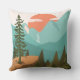 Introducing our Modern Abstract Forest, Mountains, and Sunrise Outdoor Pillow. Featuring landscape illustration in vintage style. Suitable for as a gift for nature, camping, and hiking enthusiasts.