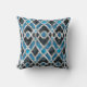Corajoso padrão de estilo de deco de arte moderna em azul e preto com o aspecto de batik pintado manualmente. Este travesseiro decorativo adicionará uma abertura de cor a qualquer decoração.