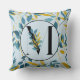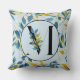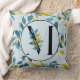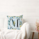 Belo design apresenta fundo de folhas azuis e douradas sobre fundo azul claro com monograma/ M inicial com folhas embelezadas no círculo central