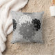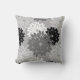 Travesseiro decorativo em um tradicional travesseiro decorativo de quimono floral japonês - flores estilizadas em tons de grafite e cinzas/cinzas leves, preto e branco em fundo de cinza médio