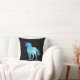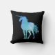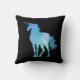Travesseiro de fundo preto com silhueta Unicorn de estilo polígono azul. Impresso frente e verso.