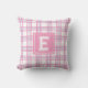 Almofada Modern Preppy Plaid Varsity Monogram Pink Purple