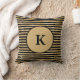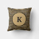 Travesseiro preto e dourado listrado monogramado.