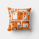 Este travesseiro é coberto por retângulos modernos do século médio laranja e estrelas pretas.