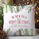 Comemore a temporada de festas com este travesseiro decorativo elegante e personalizado. Apresentando uma bela design de aquarela de verde-luxuoso e bagas vermelhas, juntamente com a mensagem sincera "Desejamos-lhe um Feliz Natal" e nomes familiares personalizáveis, este travesseiro adiciona um toque quente e festivo à sua decoração doméstica. A delicada folhagem e a tipografia clássica criam um aspecto sofisticado, perfeito para receber convidados em sua sala de estar, quarto ou entrada. Espalhe a alegria do feriado com esta charmosa e personalizada peça decorativa.